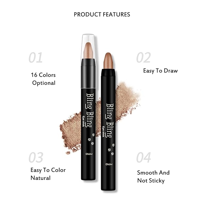 A vibrant 15-color glitter eyeshadow stick set featuring shimmer, pearl, and metallic cream formulas in easy-to-use crayon sticks. Each highly pigmented stick glides on smoothly with a creamy, blendable texture, offering long-lasting, smudge- and fade-resistant color that creates bold, shiny eye makeup looks. The twist-up design makes application quick and convenient, ideal for parties, weddings, or everyday glam. Vegan and cruelty-free with easy removal. A vibrant 15-piece glitter eyeshadow stick set featuring shimmer, pearl and metallic cream sticks that deliver long-lasting, highly pigmented color with a smooth, blendable texture. The twist-up crayons are easy to apply and remove, creating dazzling eye looks for everyday wear, parties, weddings, and special occasions โ no sharpening needed and suitable for quick makeup application on the go. VEGAN and cruelty-free with a soft, skin-friendly formula that resists fading and smudging for all-day wear.