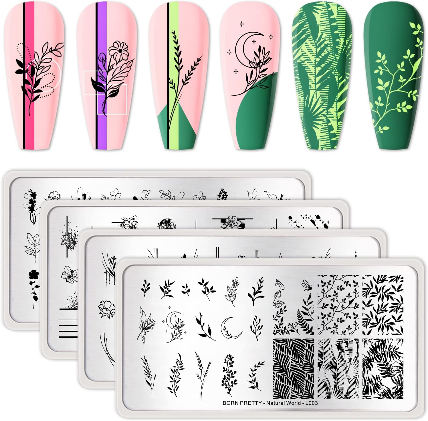 BORN PRETTY Rectangle Nail Stamping Plates are stainless steel nail art templates designed for creating intricate, professional-looking nail designs easily at home or in a salon. They are part of a popular nail art stamping system that lets you transfer patterns from metal plates onto your nails using stamping polish and a stamper.